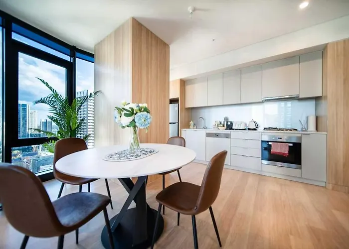 Die Apartments bietet einen Balkon, eine Sitzecke und eine Küche und Annehmlichkeiten wie eine Klimaanlage. Die Gäste des Apartments Sky-High Cbd Living Walk To Everything genießen den Komfort von einem Haartrockner und einem Wäschetrockner im Badezimmer. Außerdem gibt es hier eine getrennte Toilette und eine Dusche.